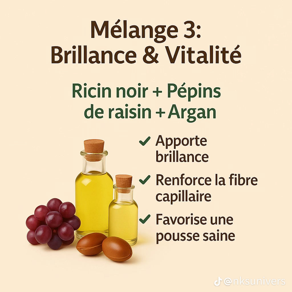 L’huile pour cheveux est un soin nourrissant et réparateur conçu pour redonner vitalité, douceur et brillance à la chevelure. Riche en acides gras essentiels, en vitamines et en antioxydants, elle aide à hydrater en profondeur la fibre capillaire, à renforcer les pointes et à protéger les cheveux contre les agressions extérieures (soleil, pollution, chaleur des appareils coiffants).